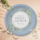 Prato De Papel Chá de Noiva Azul Empoeirado Elegante com Folhagen