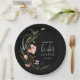 Pratos de papel elegantes para chá de noiva em vários tamanhos e estilos apresentam flores silvestres em aquarela e seus detalhes em letras elegantes em um fundo preto. Itens CORRESPONDENTES em nossa coleção.