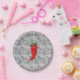Um personagem de desenho animado de pimenta vermelha e quente. Design original com padrão de renda preta e branca ao fundo.