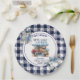 Prato De Papel Chá de Noiva Floral Azul Xadrez fora do Mercado
