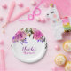 Pratos de Chá de Noiva Floral Moderno Rosa e Roxo Brilhante. Personalize com qualquer texto para qualquer evento.
