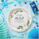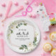Prato de Papel para Chá de Noiva Geométrico Verde com Flores Brancas