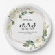 Prato De Papel Chá de Noiva Geométrico Verde com Flores Brancas