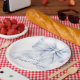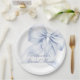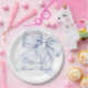 Este prato de papel elegante apresenta um charmoso laço azul perfeito para um chá de noiva "algo azul". Desenhado em aquarela pastel suave, combina caligrafia manuscrita romântica com elementos caprichosos da moda. Ideal para um chá de noiva azul-acinzentado.