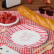 Prato De Papel Chá de Noiva Listras Brancas Vermelhas e Rosas