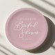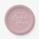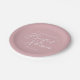 Este prato de papel para chá de noiva rosa poeira apresenta uma tipografia branca delicada para uma festa de chá romântica à tarde para uma noiva feminina que gosta de cores suaves e design de texto minimalista. Decoração cor-de-rosa pastel suave.