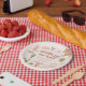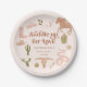 Chá de noiva tema western rústico prato de papel com ilustração de motivos de cowgirl. O texto diz "apronto para o amor".