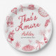 Organize uma celebração memorável com tema italiano com estes pratos de papel editáveis "That's Amore" para chá de noiva, apresentando ilustrações encantadoras de pizza e macarrão desenhadas à mão em um estilo rústico e caprichoso vermelho.