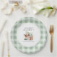 Sirva charme com este prato de chá de noiva temático de mercado de produtos da Redwood & Vine Design Co. Com uma borda xadrez verde fresca e uma cesta de produtos pintada à mão, este prato de papel personalizável é perfeito para chás de cozinha, brunch rústicos ou festas no jardim. Um detalhe encantador para uma noiva que está “fresca do mercado.”