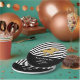 As placas de papel de chá de panela derby tematizadas - em 2 tamanhos - apresentam um cavalo de corrida em cintilação de ouro falso em faixas pretas e brancas no topo e uma área preta sólida no fundo para sua personalização personalizada. CORRESPONDENTE a itens na nossa coleção.