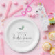 Chá de panela de Data do Nome do Script Moderno do Eucalyptus. Mínima elegância com um pequeno motif de folha de aquarela acima do nome e da data no meio, que você pode personalizar facilmente, e um moderno script de conjunto manuscrito para o chá de panela no meio.