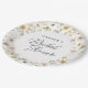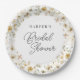 Placa de papel redonda moderna apresenta um quadro de flores silvestres delicadas em tons suaves de rosa pincelado, amarelo, roxo, marfim e verde. Personalize com o nome da noiva com o modelo fácil de editar, apresentando uma fonte de script romântica e uma fonte serif moderna. Suprimir o texto para ter um prato simples apenas com flores. Verifique os itens correspondentes nas coleções "Chás de panela" e "Watercolor Wildflower".