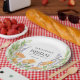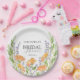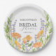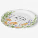 Estas placas de papel de chá de panela apresentam uma parte inferior de flores silvestres de cor d'água em tons de laranja e roxo lavanda. Use os campos modelo para adicionar seu texto personalizado. Uma escolha elegante para casamentos com tema de flor silvestre ou chás de panela de jardim botânico. Arte e design de aquarela únicas de Victoria Grigaliunas de Do Tell A Belle.