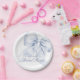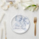 Este prato de papel elegante apresenta um charmoso laço azul perfeito para um chá de panela de noiva "algo azul". Concebido em aquarela pastel suave, combina caligrafia manuscrita romântica com elementos caprichosos da moda. Ideal para um chá de panela de noiva azul poeirento.