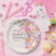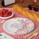 Placa de chá de panela de verão das flores silvestres pastel românticas, primavera, com flores bonito do campo selvagem, em cor rosa, pêssego, roxo, lavanda, folhas verdes e muito mais, com uma tipografia com escrita escovada sobre um fundo rosa pastel macio elegante e editável.