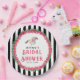 Esta placa do partido Derby tem um cavalo de corrida de aquarelas com um jóquei em rosa cercado por uma coroa de rosas vermelhas com o ditado "Chá de panela" Há um fundo listrado preto e branco. Você pode personalizar com um nome e data.