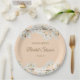 Elegante e bonito placa de papel do chá de panela branco florescente com delicado primavera florescimento enquadrando seus detalhes do chá de panela em um elegante texto dourado em um fundo colorido de pêssego. Personalize com seus detalhes de eventos especiais. Projetado por Thisnotme©