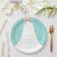 Uma noiva em seu vestido de noiva sobre uma rosa branca sobre um fundo de turquesa (ou qualquer cor), faz uma bela adição ao seu decoro de chá de panela. CORRESPONDENDO a itens na nossa loja.