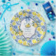 Um design elegante de chá de panela com fundo de azulejo azul e limões.