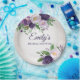 Linda ameixa, púrpura e lavanda aquosa, floral e verde em placas de chá de panela branco botânico. Personalizado com o nome da futura noiva. Todo texto é personalizável, então adicione ou remova como desejar. Entre em contato conosco para obter ajuda sobre a personalização ou produtos correspondentes.