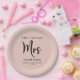Moderno e chique "The Future Mrs" personalizou placas de papel cor-de-rosa para o seu chá de panela. "Sra." está escrita em um grande roteiro elegante, e você pode personalizar com seu futuro nome casado, nome próprio e data de chá.