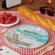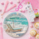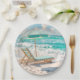 Prato De Papel Chaise Lounge Na Areia Do Oceano Branco