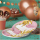 Prato De Papel Chama Dourada Elegante Rosa