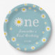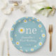 Prato De Papel Chamomile Flower Teal Watercolor Primeiro Aniversá