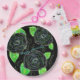 Chapas de papel modernas - 9 polegadas com impressão de arte floral preta, com sotaques verdes e lacrimogêneos. O texto feliz de aniversário pode ser personalizado para qualquer mensagem, e o fundo preto pode ser mudado para sua própria cor favorita.