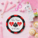 Placas de design de papel em poker de Las Vegas com cores vermelhas e pretas com ícones de cartas de jogar. Rei e Rainha de corações com pá preto. Adicione seu próprio nome personalizado de noiva e noiva, além da data do casamento. Suprimentos descartáveis para casais recens casados/recém-casados. Modelo de jogo de casino. Excelente para bolo, lanches, janto e muito mais.