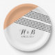Placas de Papel de Casamento Geométrico de Stripe Moderna e moderna com triângulo laranja e sotaque fino. Estes pratos simples, mas elegantes, estão preparados para serem facilmente personalizados com as suas informações de casamento. Localize mais opções de personalização clicando em Personalizar.