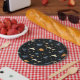 Chapas negras a frio com um padrão vintage de abóboras, caldeiros azuis, milho doce, morcegos e estrelas. Alto contraste, lê excelente a distância — perfeito para lanches e sobremesas. Disponível em 7" (mais popular para partidos) e tamanho jante de 9". Pares com copos correspondentes, guardanapos e convites da mesma coleção.