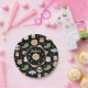 Cute Safari O animal do zoológico Selva enfrenta pratos de papel preto de aniversários com nome e idade incluídos.