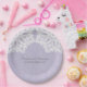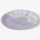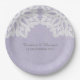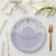Placas de papel de casamento de rendas elementares simples e sofisticadas, com um local branco, doily motif, sobre um fundo de papel fino púrpura e leve. Estes pratos clássicos e na moda são perfeitos para um casamento rústico. Fácil de personalizar com seus detalhes de casamento. Clique em "Personalizar" para encontrar mais opções de personalização.