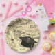 Chapas de folhas de mais velho graduadas, com imagem de diploma e boné de formatura rodeados sobre fundo de sépia.