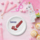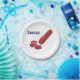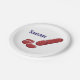 Uma salsicha com algumas peças cortadas. Este design parece realmente eficaz nestas placas de papel