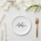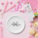 Chapas de papel personalizadas elegantes. Placas de papel descartáveis para aniversário, casamento, chá de fraldas e muito mais. modelo de monograma clássico com tipografia de na moda. design branco e preto clássico. Excelente para bolo e mais