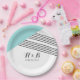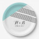 Placas de Papel de Casamento Geométrico de Stripe Moderna e moderna, com triângulo de turquesa e sotaque fino. Estes pratos simples, mas elegantes, estão preparados para serem facilmente personalizados com as suas informações de casamento. Localize mais opções de personalização clicando em Personalizar.