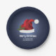 Prato De Papel Chapéu De Noel Festivo Vermelho Em Azul Com Texto