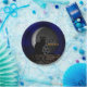 Uma silhueta do gato preto de Théophile Steinlen para o clube do Le Chat Noir em um cenário moderno para Chanukah apresentando o gato negro com uma menorah acesa e uma lua em declínio.