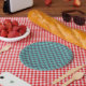Prato De Papel Checkerboard azul e verde