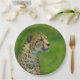 Um guepardo de olho. O lindo gato grande em um fundo verde pastoso.