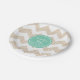 Placa de papel personalizável de 50ª Festa de aniversário com gavron e cor personalizável em tag redonda. Você pode mudar facilmente a cor de fundo (aqui aqua mint color) e a cor do texto (name), a fonte, o tamanho e a posição clicando no botão personalizar. Correspondência com o papel de aniversário Chevron Napkins, aniversariante salvar a data, convite e livro de convidados. Não se esqueça da coleção inteira.