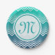 Prato De Papel Chevron Zigzag Branco E Fundo Verde Azul