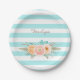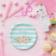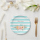 Prato De Papel Chic Aqua Stripes Feminine Floral e Nome