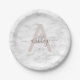 Prato De Papel Chic Blush White Marble Script Name Monogramo