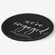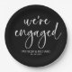 Um prato de papel de festa de noivado com caligrafia elegante. Fácil de personalizar com seus detalhes. PERSONALIZAÇÃO: Se você precisar de personalização de design, entre em contato comigo pelo chat; se você precisar de informações sobre seu pedido, opções de envio, etc., entre em contato com o suporte da Zazzle diretamente.