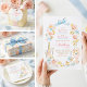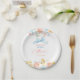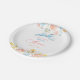 Este prato de papel caprichoso para chá de panela de noiva apresenta um charmoso ilustrado de flores em aquarela pastéis suaves com um laço divertido. Detalhes desenhados à mão em rosa beije, amarelo manteiga e azul suave criam uma paleta aérea e romântica com um toque divertido e artístico.