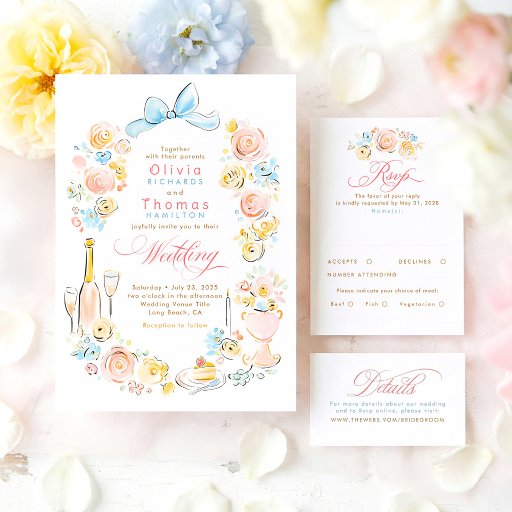 Pastel Floral Whimsical Hand Drawn Wedding SuiteCriado por Lita .