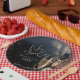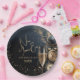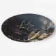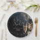 Stylish New Year's Eve party round paper plates, in 2 sizes, feature a champagne glass, clocks, confetti and fireworks on a midnight blue background with your party details in chic lettering. MATCHING items in our collection.
